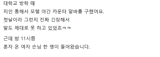 모ㅌ 카운터 알바 첫날 혼자 온 여자랑 생긴일 ㄷㄷ