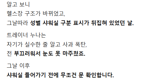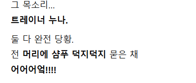 헬스장 샤워실 문 안 잠겼는데 트레이너 누나가...