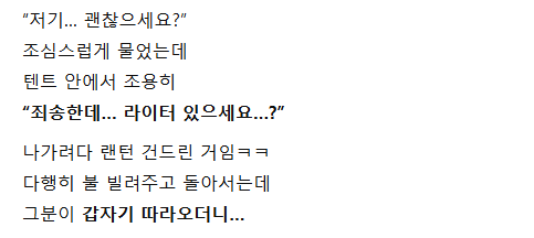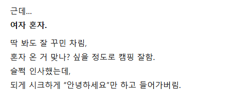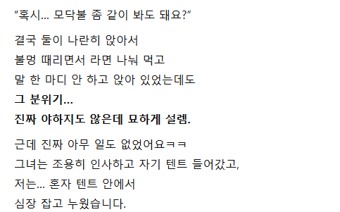 혼자 캠핑 갔다가… 옆 텐트 여자랑 생긴 일
