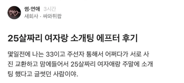 25살여자와 소개팅한 33살 남자의 후기